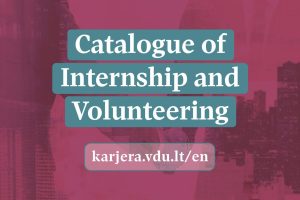 We invite you to explore the 23th edition of the Catalogue of Internship and Volunteering Offers Catalogue, published by the VMU Career Center. This edition is dedicated to all university students and features internship and volunteering opportunities offered by companies, government institutions, a...