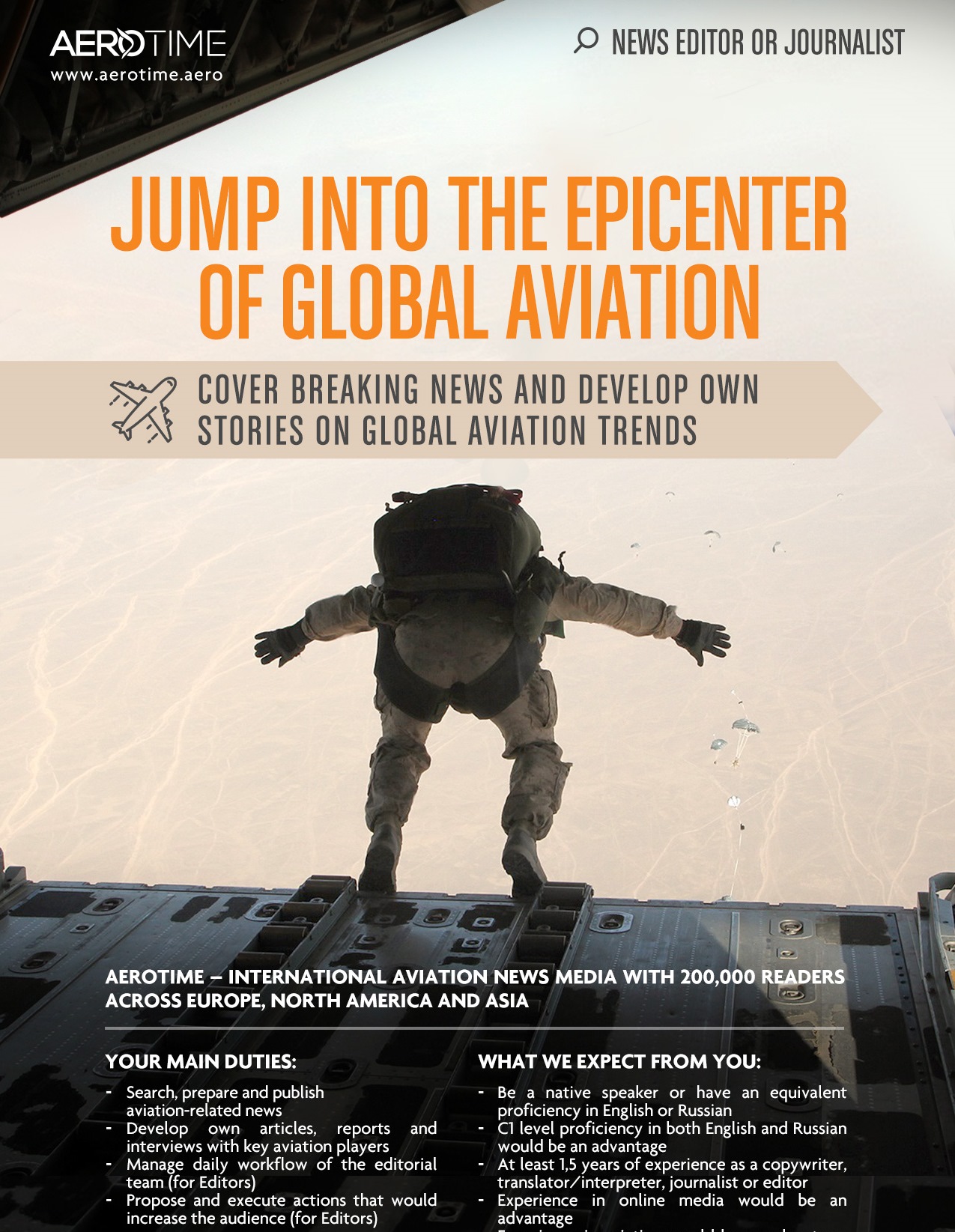 CVs are welcome at editor@aerotime.aero.