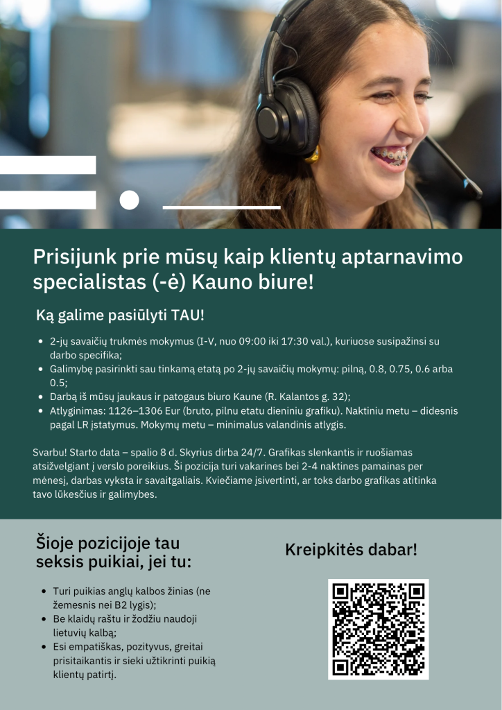 Ieškote darbuotojo, praktikanto, savanorio?