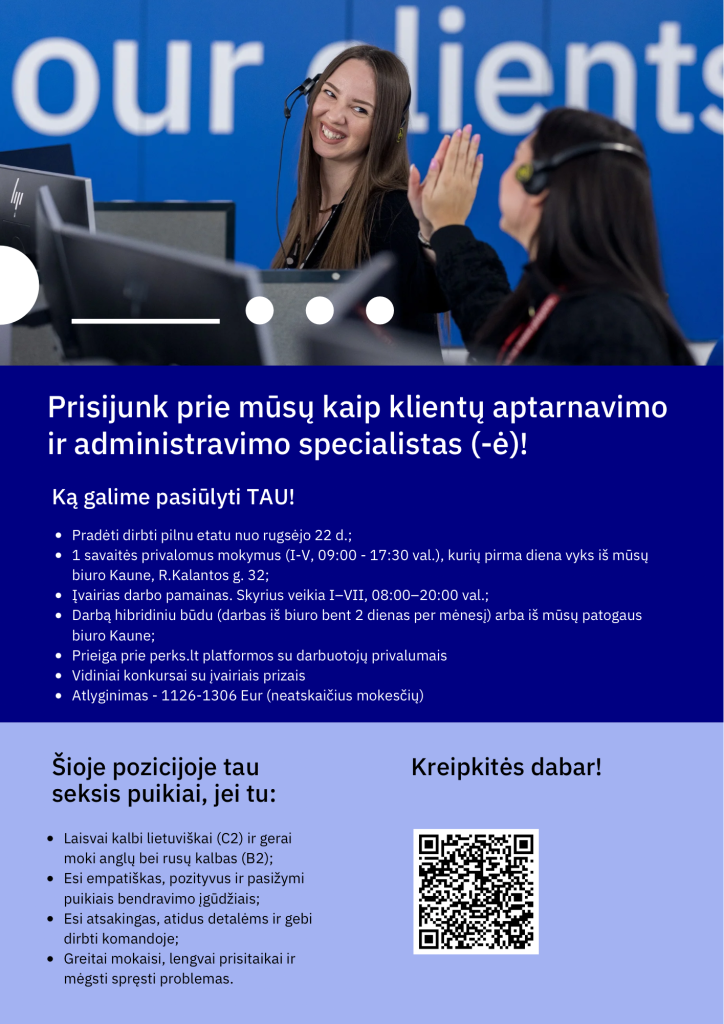 Klientų aptarnavimo ir administravimo specialistas (-ė)