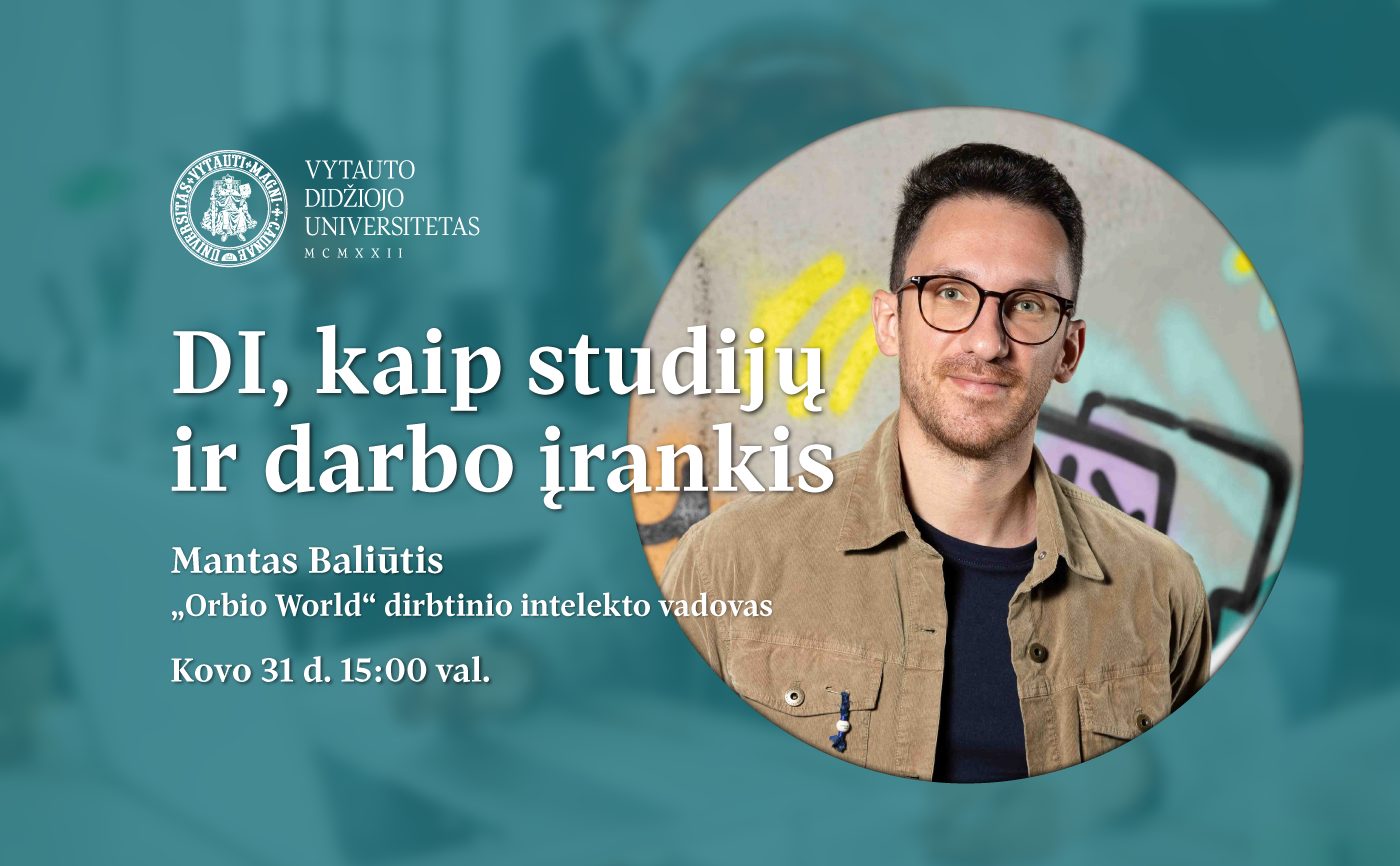 Dirbtinio intelekto temą seminare pristatys Mantas Baliūtis – „Head of Artificial Intelligence“ įmonėje Orbio World. Susitikimo metu studentai sužinos, kodėl dirbtinis intelektas jau šiandien yra ne ateities vizija, o kasdienė realybė, keičianti mokymosi ir darbo procesus. Bus aptarta, kaip DI įrankiai gali padėti efektyviau studijuoti, greičiau spręsti praktines užduotis ir įgyti kompetencijų, kurių darbdaviai tikisi jau dabar.